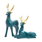 Looking to add a whimsical touch to your decor? This duo of deer showpieces is just what you need! With a vibrant green finish and golden antlers that catch the light like a morning sunbeam, these figures bring a bit of nature’s charm indoors. And those angles? Theyve got a modern vibe thats hard to resist. Imagine them gracing your mantle, a nod to the wild with a stylish twist. Well, heres the thingthis set is like having a little piece of the forest at home. Perfect for cozy nights with a cup of tea and a good book.